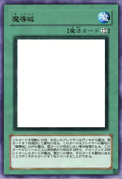| このカードを発動した時、お互いのプレイヤーはデッキから魔法、罠カードを1枚選択して墓地に送る。このカードはプレイヤーの墓地に「魔導城」以外の魔法、罠カードが存在しない場合破壊される。このカードがフィールド上に表側表示で存在する限り、ドローフェイズ時にドローしたカードが魔法、罠だった場合、そのカードを墓地に送ることでデッキからカードを1枚ドローすることができる。 | |||