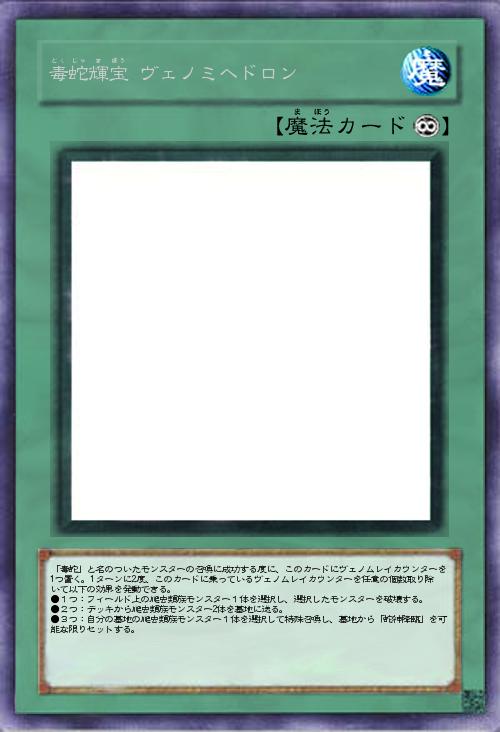 「毒蛇」と名のついたモンスターの召喚に成功する度に、このカードにヴェノムレイカウンターを1つ置く。1ターンに2度、このカードに乗っているヴェノムレイカウンターを任意の個数取り除いて以下の効果を発動できる。 ●1つ:フィールド上の爬虫類族モンスター1体を選択し、選択したモンスターを破壊する。 ●2つ:デッキから爬虫類族モンスター2体を墓地に送る。 ●3つ:自分の墓地の爬虫類族モンスター1体を選択して特殊召喚し、墓地から「蛇神降臨」を可能な限りセットする。 |