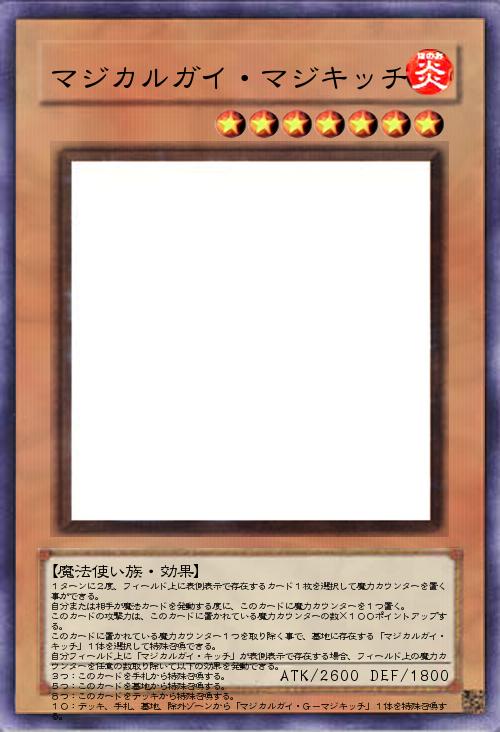 1ターンに2度、フィールド上に表側表示で存在するカード1枚を選択して魔力カウンターを置く事ができる。 自分または相手が魔法カードを発動する度に、このカードに魔力カウンターを1つ置く。 このカードの攻撃力は、このカードに置かれている魔力カウンターの数×100ポイントアップする。 このカードに置かれている魔力カウンター1つを取り除く事で、墓地に存在する「マジカルガイ・キッチ」1体を選択して特殊召喚できる。 自分フィールド上に「マジカルガイ・キッチ」が表側表示で存在する場合、フィールド上の魔力カウンターを任意の数取り除いて以下の効果を発動できる。 3つ:このカードを手札から特殊召喚する。 5つ:このカードを墓地から特殊召喚する。 8つ:このカードをデッキから特殊召喚する。 10:デッキ、手札、墓地、除外ゾーンから「マジカルガイ・G-マジキッチ」1体を特殊召喚する。 |