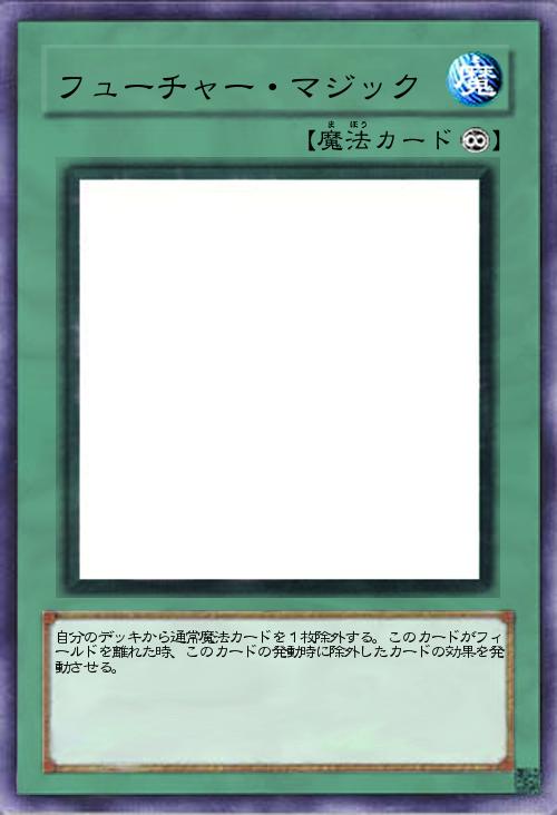| 自分のデッキから通常魔法カードを1枚除外する。このカードがフィールドを離れた時、このカードの発動時に除外したカードの効果を発動させる。 | |||