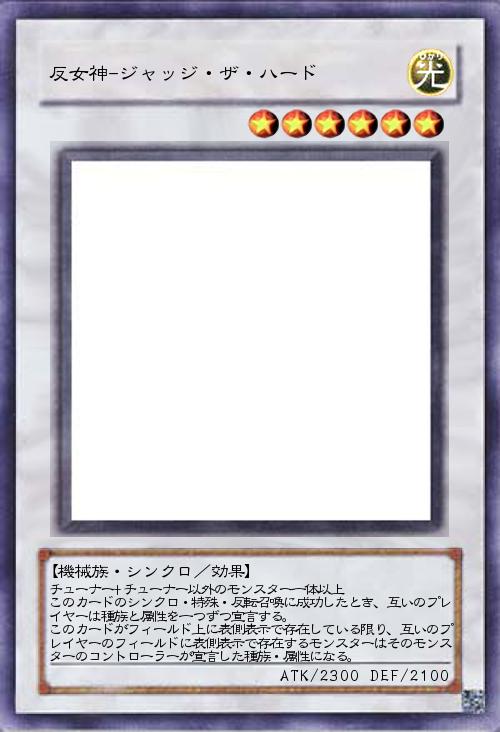 チューナー+チューナー以外のモンスター一体以上 このカードのシンクロ・特殊・反転召喚に成功したとき、互いのプレイヤーは種族と属性を一つずつ宣言する。 このカードがフィールド上に表側表示で存在している限り、互いのプレイヤーのフィールドに表側表示で存在するモンスターはそのモンスターのコントローラーが宣言した種族・属性になる。 |
