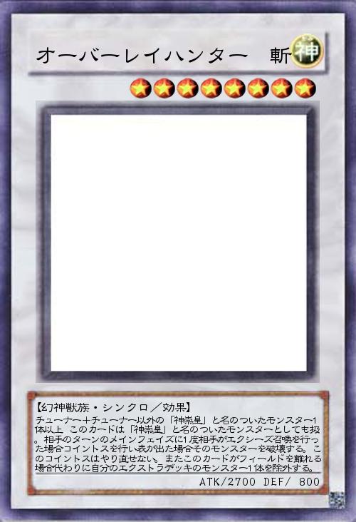 | チューナー+チューナー以外の「神崇皇」と名のついたモンスター1体以上 このカードは「神崇皇」と名のついたモンスターとしても扱。相手のターンのメインフェイズに1度相手がエクシーズ召喚を行った場合コイントスを行い表が出た場合そのモンスターを破壊する。このコイントスはやり直せない。またこのカードがフィールドを離れる場合代わりに自分のエクストラデッキのモンスター1体を除外する。 | |||