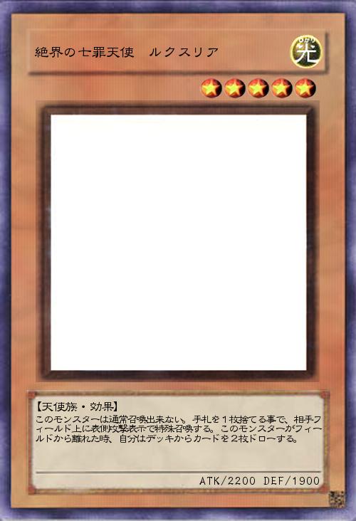 | このモンスターは通常召喚出来ない。手札を1枚捨てる事で、相手フィールド上に表側攻撃表示で特殊召喚する。このモンスターがフィールドから離れた時、自分はデッキからカードを2枚ドローする。 | |||