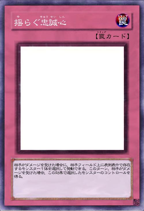 | 相手がダメージを受けた場合に、相手フィールド上に表側表示で存在するモンスター1体を選択して発動できる。このターン、相手がダメージを受けた場合、この効果で選択したモンスターのコントロールを得る。 | |||