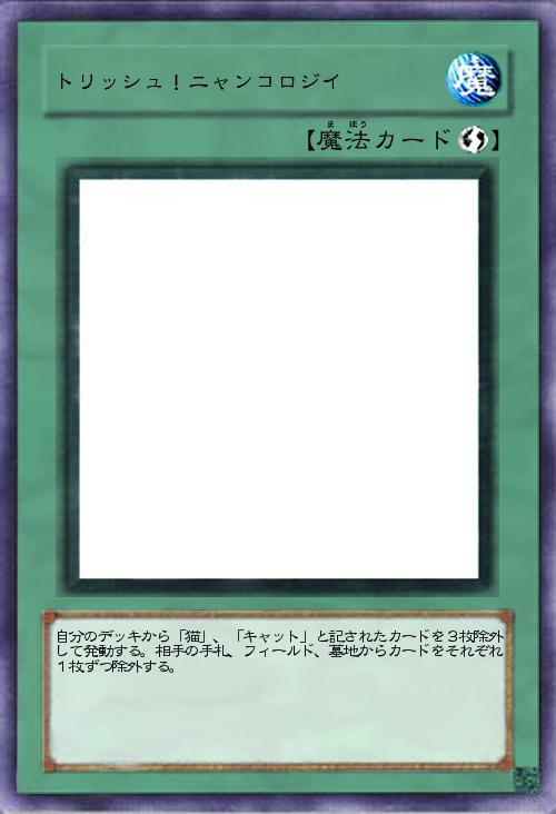 | 自分のデッキから「猫」、「キャット」と記されたカードを3枚除外して発動する。相手の手札、フィールド、墓地からカードをそれぞれ1枚ずつ除外する。 | |||