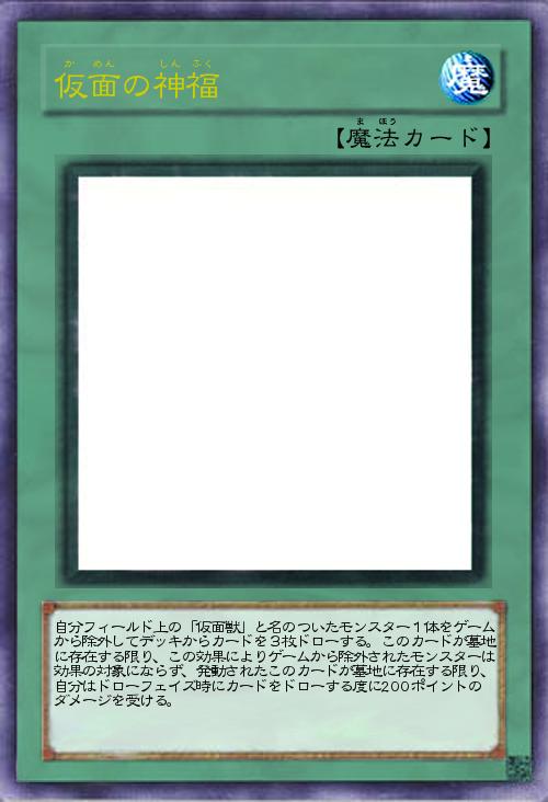 | 自分フィールド上の「仮面獣」と名のついたモンスター1体をゲームから除外してデッキからカードを3枚ドローする。このカードが墓地に存在する限り、この効果によりゲームから除外されたモンスターは効果の対象にならず、発動されたこのカードが墓地に存在する限り、自分はドローフェイズ時にカードをドローする度に200ポイントのダメージを受ける。 | |||