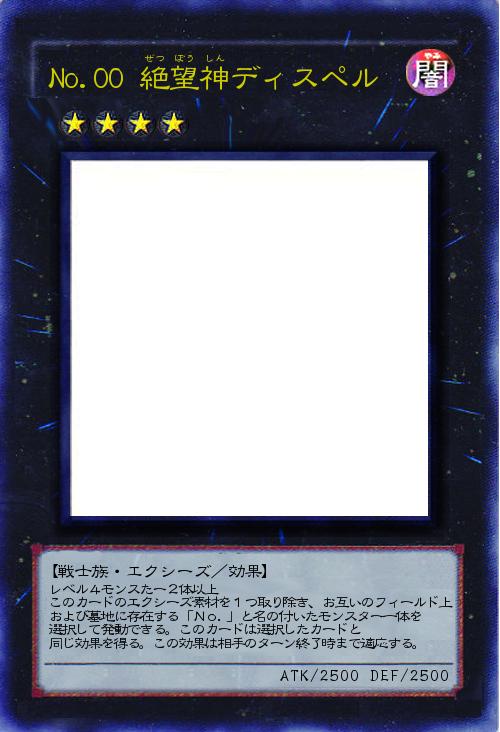 レベル4モンスたー2体以上 このカードのエクシーズ素材を1つ取り除き、お互いのフィールド上および墓地に存在する「No.」と名の付いたモンスター一体を 選択して発動できる。このカードは選択したカードと 同じ効果を得る。この効果は相手のターン終了時まで適応する。 |