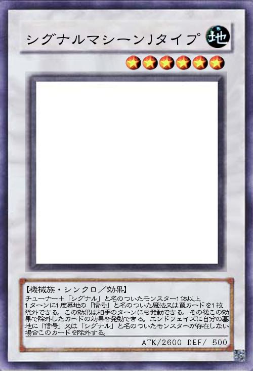 チューナー+「シグナル」と名のついたモンスター1体以上 1ターンに1度墓地の「信号」と名のついた魔法又は罠カードを1枚除外できる。この効果は相手のターンにも発動できる。その後この効果で除外したカードの効果を発動できる。エンドフェイズに自分の墓地に「信号」又は「シグナル」と名のついたモンスターが存在しない場合このカードを除外する。 |