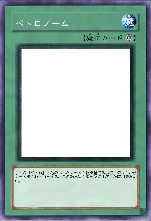 | 手札の「ペトロ」と名のついたカード1枚を捨てる事で、デッキからカードを1枚ドローする。この効果は1ターンに1度しか使用できない。 | |||