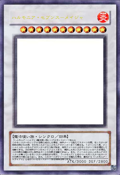 「ハルモニア・ハイク」+魔法使い族シンクロモンスター1体以上 このモンスターのシンクロ召喚に成功した場合、相手ターンで数えて3ターンの間、モンスターが特殊召喚された時、そのモンスターにハルモニアカウンターを1つ乗せる。1ターンに1度、フィールド上のハルモニアカウンターが2つ取り除き、相手フィールド上のモンスター1体を選択して発動できる。次の相手ターンのエンドフェイズまで、選択したモンスターのコントロールを得る。この効果の発動に対し相手はカードの効果を発動できない。また、フィールド上にハルモニアカウンターが乗っているモンスターが存在する限り、「ハルモニア」と名のついたモンスターはカードの効果の対象にならない。また、このカードがフィールドを離れた場合、墓地から「ハルモニア・トライアド」と名のついたモンスター1体を特殊召喚できる。 |