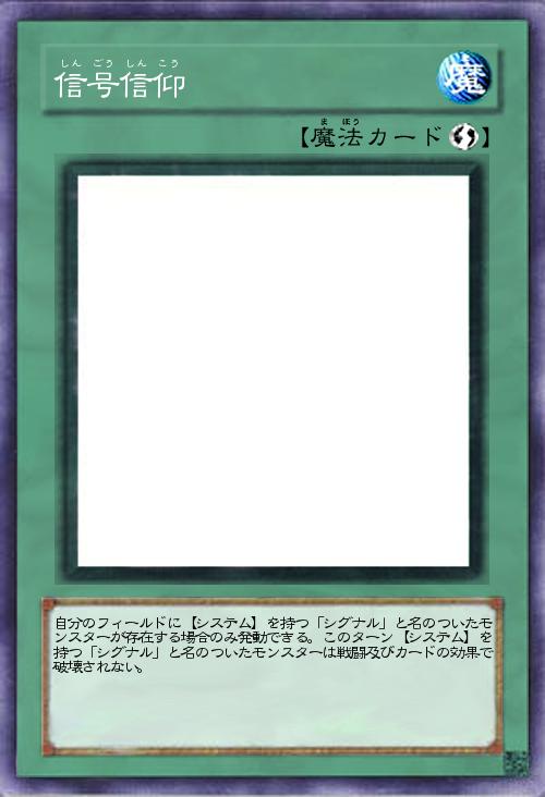| 自分のフィールドに【システム】を持つ「シグナル」と名のついたモンスターが存在する場合のみ発動できる。このターン【システム】を持つ「シグナル」と名のついたモンスターは戦闘及びカードの効果で破壊されない。 | |||