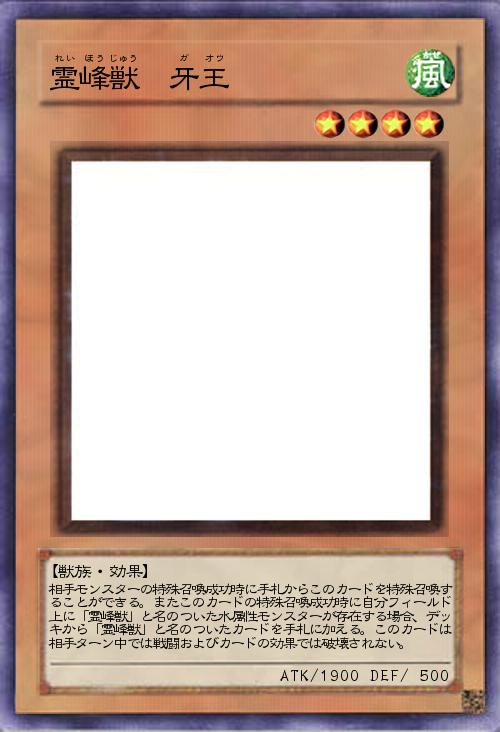 | 相手モンスターの特殊召喚成功時に手札からこのカードを特殊召喚することができる。またこのカードの特殊召喚成功時に自分フィールド上に「霊峰獣」と名のついた水属性モンスターが存在する場合、デッキから「霊峰獣」と名のついたカードを手札に加える。このカードは相手ターン中では戦闘およびカードの効果では破壊されない。 | |||