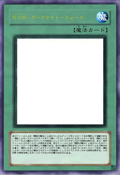 「「闇夜の騎士」のRUM。墓地からのランクアップが可能に。ただし攻撃力は半分になる。」(2014-01-01 21:09)