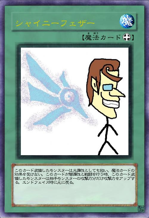 「( ゚Д゚)つ『装備モンスターは光属性としても扱い、このカード以外の魔法カードの効果を受けない。また、装備モンスターが闇属性モンスターと戦闘を行うダメージ計算時に1度だけ発動する。エンドフェイズ時まで装備モンスターの攻撃力は戦闘を行う相手モンスターの攻撃力分アップする。』