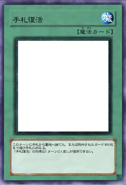 このターンに手札から墓地へ捨てた、または除外されたカードを6枚まで選び手札に加える。 「手札復活」の効果は1ターンに1度しか使用できない。 |