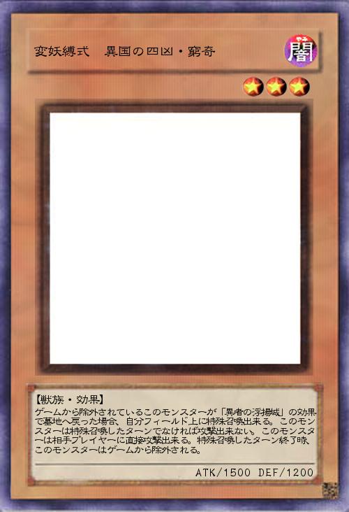 ゲームから除外されているこのモンスターが「異者の浮揚城」の効果で墓地へ戻った場合、自分フィールド上に特殊召喚出来る。このモンスターは特殊召喚したターンでなければ攻撃出来ない。このモンスターは相手プレイヤーに直接攻撃出来る。特殊召喚したターン終了時、このモンスターはゲームから除外される。 |