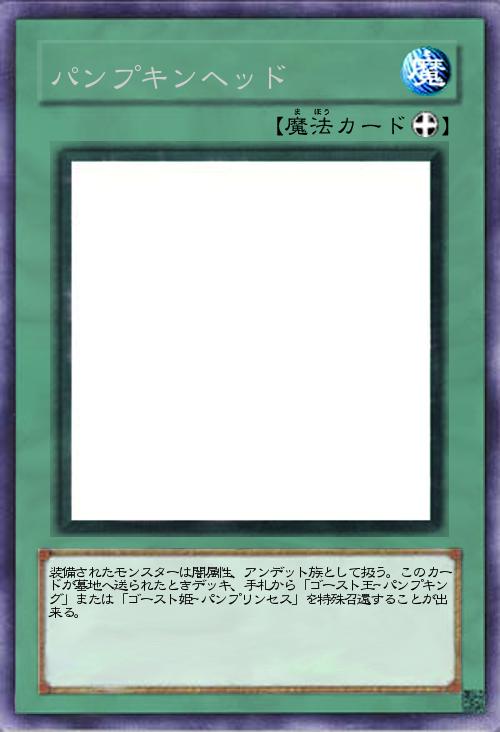 | 装備されたモンスターは闇属性、アンデット族として扱う。このカードが墓地へ送られたときデッキ、手札から「ゴースト王ーパンプキング」または「ゴースト姫ーパンプリンセス」を特殊召還することが出来る。 | |||
