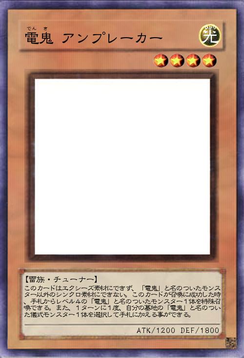 | このカードはエクシーズ素材にできず、「電鬼」と名のついたモンスター以外のシンクロ素材にできない。このカードが召喚に成功した時、手札からレベル4の「電鬼」と名のついたモンスター1体を特殊召喚できる。また、1ターンに1度、自分の墓地の「電鬼」と名のついた儀式モンスター1体を選択して手札に加える事ができる。 | |||