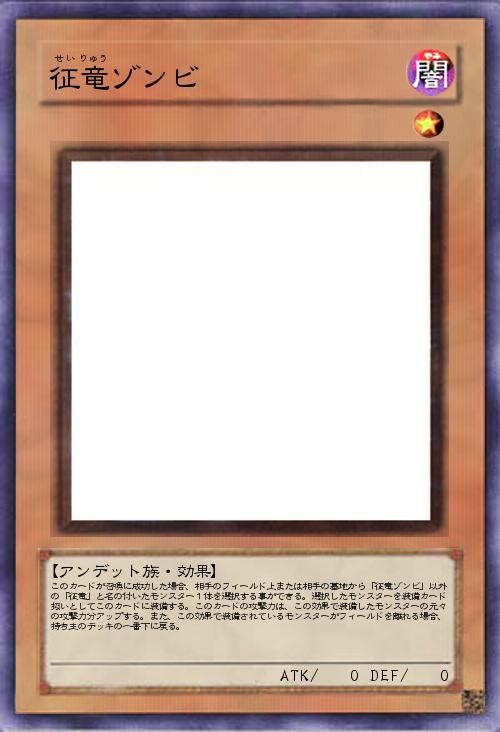 | このカードが召喚に成功した場合、相手のフィールド上または相手の墓地から「征竜ゾンビ」以外の「征竜」と名の付いたモンスター1体を選択する事ができる。選択したモンスターを装備カード扱いとしてこのカードに装備する。このカードの攻撃力は、この効果で装備したモンスターの元々の攻撃力分アップする。また、この効果で装備されているモンスターがフィールドを離れる場合、持ち主のデッキの一番下に戻る。 | |||