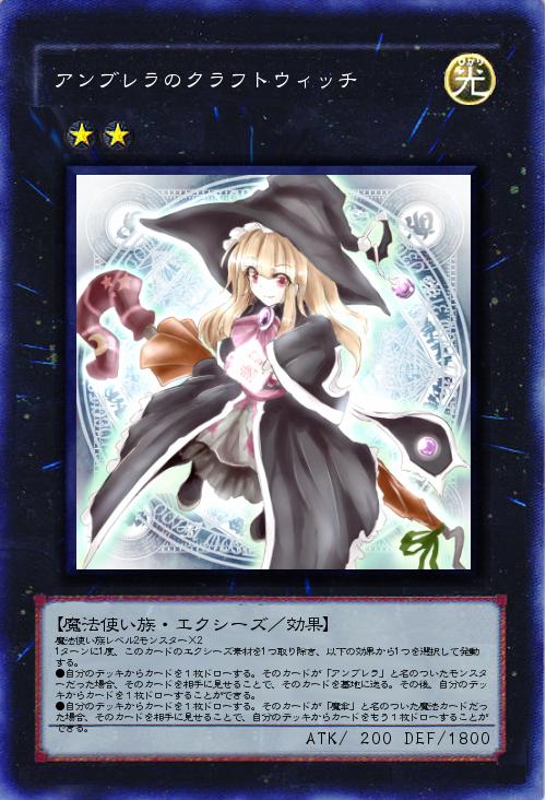 魔法使い族レベル2モンスター×2 1ターンに1度、このカードのエクシーズ素材を1つ取り除き、以下の効果から1つを選択して発動する。 ●自分のデッキからカードを1枚ドローする。そのカードが「アンブレラ」と名のついたモンスターだった場合、そのカードを相手に見せることで、そのカードを墓地に送る。その後、自分のデッキからカードを1枚ドローすることができる。 ●自分のデッキからカードを1枚ドローする。そのカードが「魔傘」と名のついた魔法カードだった場合、そのカードを相手に見せることで、自分のデッキからカードをもう1枚ドローすることができる。 |