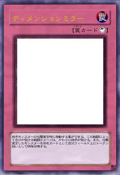 | 相手モンスターの攻撃宣言時に発動する事ができる。この戦闘によって自分が受ける戦闘ダメージは、かわりに相手が受ける。また、攻撃宣言したモンスターを同名カードとして自分フィールド上にトークン扱いとして特殊召喚する。 | |||