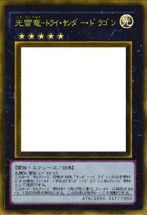 光属性・雷族 レベル5×3 このカードをエクシーズ召喚する時、「サンダー・ドラゴン」のみを素材にする場合、フィールド・手札の「サンダー・ドラゴン」をエクシーズ素材として使用できる。 このカードのエクシーズ素材を1つ取り除く事で、フィールドに存在するカード1枚の効果を無効にする。この効果は相手ターンにも発動できる。 |