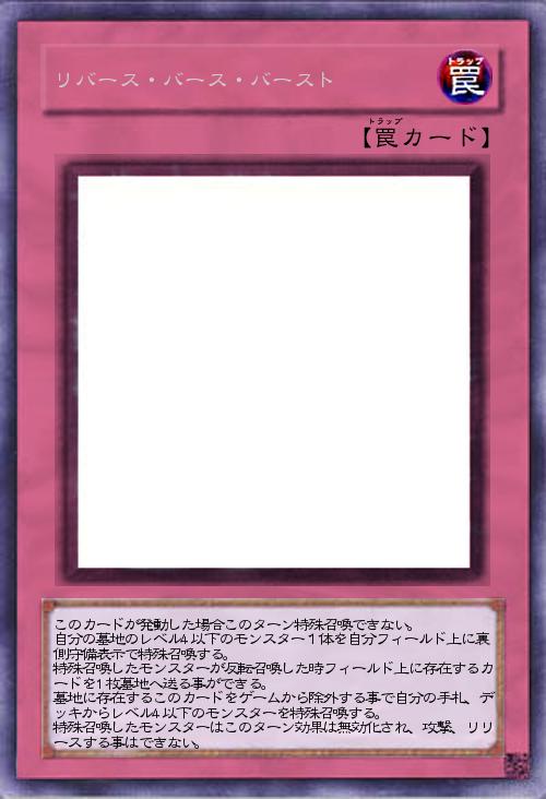 このカードが発動した場合このターン特殊召喚できない。 自分の墓地のレベル4以下のモンスター1体を自分フィールド上に裏側守備表示で特殊召喚する。 特殊召喚したモンスターが反転召喚した時フィールド上に存在するカードを1枚墓地へ送る事ができる。 墓地に存在するこのカードをゲームから除外する事で自分の手札、デッキからレベル4以下のモンスターを特殊召喚する。 特殊召喚したモンスターはこのターン効果は無効化され、攻撃、リリースする事はできない。 |