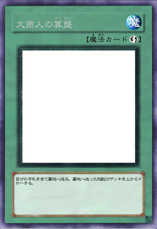 | 自分の手札を全て墓地へ送る。墓地へ送った枚数分デッキを上からドローする。 | |||