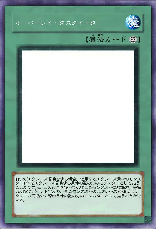 | 自分がエクシーズ召喚をする場合、使用するエクシーズ素材のモンスター1体をエクシーズ召喚する条件の数の分のモンスターとして扱うことができる。この効果を使って召喚したモンスターは攻撃力、守備力が800ポイント下がり、そのモンスターのエクシーズ素材は、エクシーズ召喚する際の条件の数の分のモンスターとして扱うことができる。 | |||