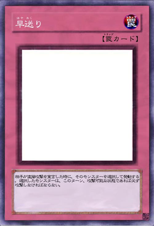 | 相手が直接攻撃を宣言した時に、そのモンスターを選択して発動する。選択したモンスターは、このターン、攻撃可能な状態であれば必ず攻撃しなければならない。 | |||