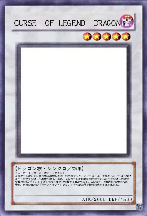 チューナー+「カース・オブ・ドラゴン」 このカードがシンクロ召喚に成功した時、相手のデッキ、フィールド上、手札からフィールド魔法カードを全て破壊して墓地へ送る。また、このカードが戦闘で相手のモンスターを破壊した場合、攻撃力を500ポイント下げてもう1度だけ攻撃する事が出来る。このカードが戦闘で破壊された場合、自分の墓地の「カース・オブ・ドラゴン」を可能な限り特殊召喚する事が出来る。 |