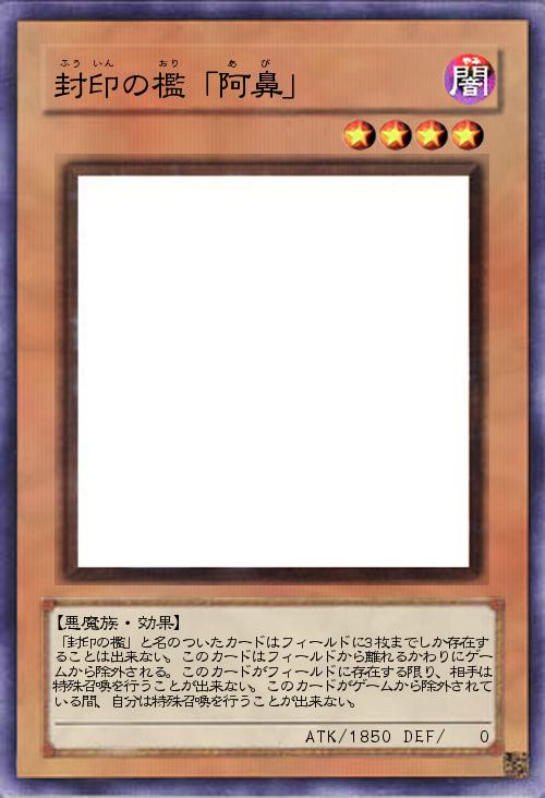 | 「封印の檻」と名のついたカードはフィールドに3枚までしか存在することは出来ない。このカードはフィールドから離れるかわりにゲームから除外される。このカードがフィールドに存在する限り、相手は特殊召喚を行うことが出来ない。このカードがゲームから除外されている間、自分は特殊召喚を行うことが出来ない。 | |||