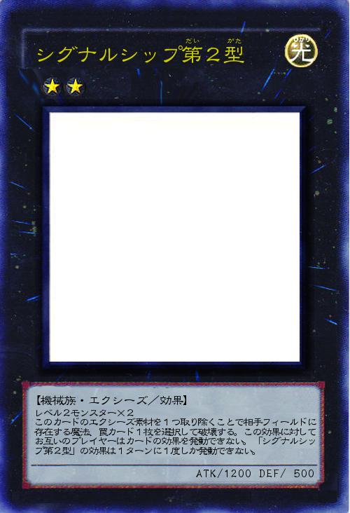 レベル2モンスター×2 このカードのエクシーズ素材を1つ取り除くことで相手フィールドに存在する魔法、罠カード1枚を選択して破壊する。この効果に対してお互いのプレイヤーはカードの効果を発動できない。「シグナルシップ第2型」の効果は1ターンに1度しか発動できない。 |