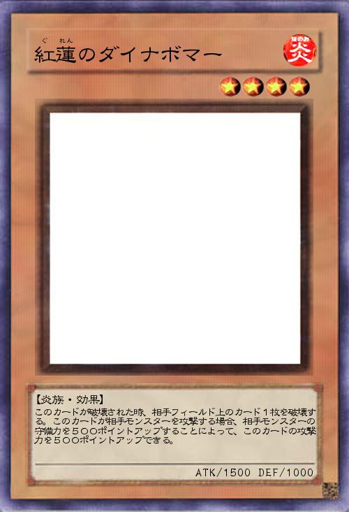 | このカードが破壊された時、相手フィールド上のカード1枚を破壊する。このカードが相手モンスターを攻撃する場合、相手モンスターの守備力を500ポイントアップすることによって、このカードの攻撃力を500ポイントアップできる。 | |||