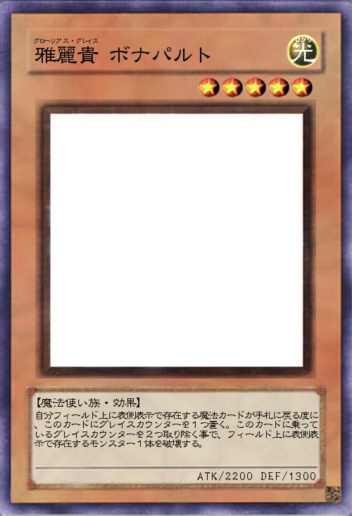 | 自分フィールド上に表側表示で存在する魔法カードが手札に戻る度に、このカードにグレイスカウンターを1つ置く。このカードに乗っているグレイスカウンターを2つ取り除く事で、フィールド上に表側表示で存在するモンスター1体を破壊する。 | |||