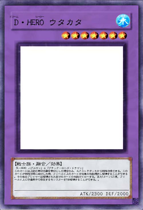 「E・HERO バブルマン」+「ブラック・ローズ・ドラゴン」 このカードは上記の素材を融合素材とした場合のみ、エクストラデッキから特殊召喚できる。このカードが特殊召喚に成功した時、フィールド上のカードを任意の枚数選択し破壊することができる。その後各プレイヤーは破壊された自分のカードの枚数分ドローする。また1ターンに1度、フィールド上に守備表示で存在するモンスターを1体破壊することができる。。 |