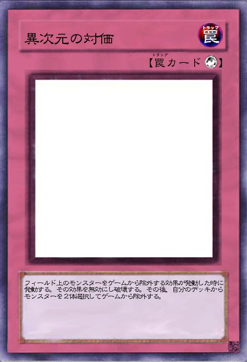| フィールド上のモンスターをゲームから除外する効果が発動した時に発動する。その効果を無効にし破壊する。その後、自分のデッキからモンスターを2体選択してゲームから除外する。 | |||