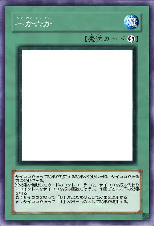 サイコロを振って効果を判定する効果が発動した時、サイコロを振る前に発動できる。 ①効果を発動したカードのコントローラーは、サイコロを振る代わりにコイントスをサイコロを振る回数だけ行い、1回ごとに以下の効果を得る。 表:サイコロを振って「6」が出たものとして効果を適用する。 裏:サイコロを振って「1」が出たものとして効果を適用する。 |