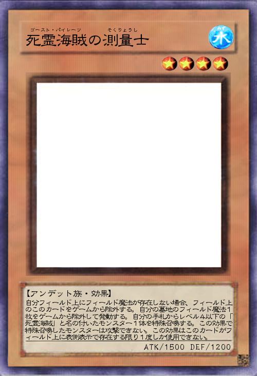 | 自分フィールド上にフィールド魔法が存在しない場合、フィールド上のこのカードをゲームから除外する。自分の墓地のフィールド魔法1枚をゲームから除外して発動する。自分の手札からレベル4以下の「死霊海賊」と名の付いたモンスター1体を特殊召喚する。この効果で特殊召喚したモンスターは攻撃できない。この効果はこのカードがフィールド上に表側表示で存在する限り1度しか使用できない。 | |||