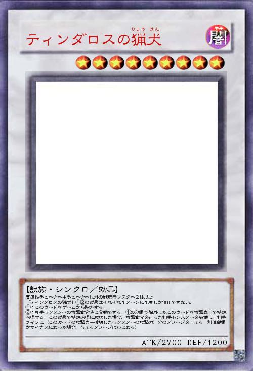 闇属性チューナー+チューナー以外の獣族モンスター2体以上 「ティンダロスの猟犬」①②の効果はそれぞれ1ターンに1度しか使用できない。 ①:このカードをゲームから除外する。 ②:相手モンスターの攻撃宣言時に発動できる。①の効果で除外したこのカードを攻撃表示で特殊召喚する。この効果で特殊召喚に成功した場合、攻撃宣言を行った相手モンスターを破壊し、相手ライフに(このカードの攻撃力-破壊したモンスターの攻撃力)分のダメージを与える(計算結果がマイナスになった場合、与えるダメージは0になる) |