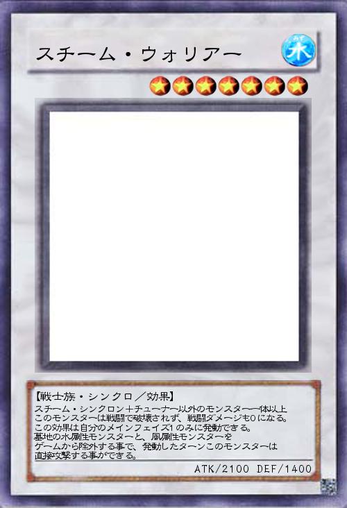 「スチームシンクロンのウォリアー?です。 スチームなので戦闘破壊耐性を持ってます。 気体なので、直接攻撃効果も付けてみました。」(2014-03-27 13:42)
