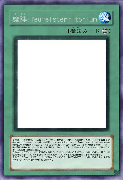 このカードの発動時、自分のデッキ・手札・墓地から「魔呪」と名の付いたカードを可能な限り発動することができる。その後この効果でフィールド上に出された「魔呪」と名の付いたカードの枚数の500倍の攻撃力を自分フィールド上の全てのモンスターに加える(この効果はこのカード発動以降に召喚されたモンスターにも適用される)。ただし、このカードがフィールド上を離れたとき、この効果は無効になる。 このカードがフィールド上に存在する限り、このカード以外の自分フィールド上の魔法・罠カードは破壊されず、このカードは1ターンに1度のみこのカードの破壊を無効にする事ができる。 そして、このカードがフィールドを離れたときこのカードの効果でフィールド上に出された全てのカードをゲームから除外せねばならない。 |