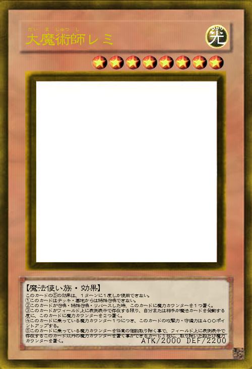 このカードの⑤の効果は、1ターンに1度しか使用できない。 ①このカードはデッキ・墓地からは特殊召喚できない。 ②このカードが召喚・特殊召喚・リバースした時、このカードに魔力カウンターを1つ置く。 ③このカードがフィールド上に表側表示で存在する限り、自分または相手が魔法カードを発動する度に、このカードに魔力カウンターを2つ置く。 ④このカードに乗っている魔力カウンター1つにつき、このカードの攻撃力・守備力は400ポイントアップする。 ⑤このカードに乗っている魔力カウンターを任意の個数取り除く事で、フィールド上に表側表示で存在するこのカード以外の魔力カウンターを置く事ができるカード1枚に、取り除いた数だけ魔力カウンターを置く。 |