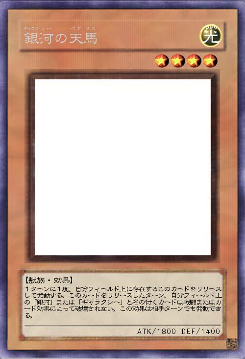 | 1ターンに1度、自分フィールド上に存在するこのカードをリリースして発動する。このカードをリリースしたターン、自分フィールド上の「銀河」または「ギャラクシー」と名の付くカードは戦闘またはカード効果によって破壊されない。この効果は相手ターンでも発動できる。 | |||