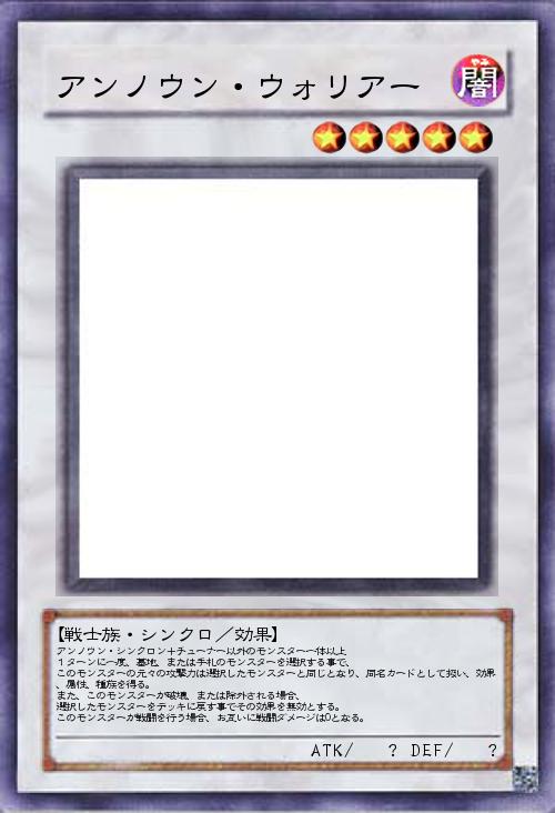 アンノウン・シンクロン+チューナー以外のモンスター一体以上 1ターンに一度、墓地、または手札のモンスターを選択する事で、 このモンスターの元々の攻撃力は選択したモンスターと同じとなり、同名カードとして扱い、効果、属性、種族を得る。 また、このモンスターが破壊、または除外される場合、 選択したモンスターをデッキに戻す事でその効果を無効とする。 このモンスターが戦闘を行う場合、お互いに戦闘ダメージは0となる。 |