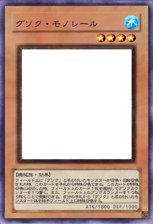 | フィールド上に「グソク」と名の付いたモンスターが召喚・反転召喚された時、このカードを手札から特殊召喚できる。このカードが特殊召喚に成功した時、フィールド上のカード1枚を選択してグソクカウンターを1つ置く。また、フィールド上のグソクカウンターを1つ取り除くことで発動できる。自分の手札から「グソク」と名の付いたモンスター1体を相手フィールド上に特殊召喚する。 | |||