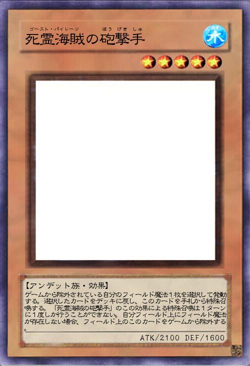 | ゲームから除外されている自分のフィールド魔法1枚を選択して発動する。選択したカードをデッキに戻し、このカードを手札から特殊召喚する。「死霊海賊の砲撃手」のこの効果による特殊召喚は1ターンに1度しか行うことができない。自分フィールド上にフィールド魔法が存在しない場合、フィールド上のこのカードをゲームから除外する。 | |||