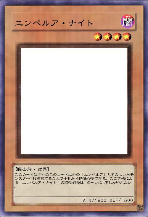 | このカードは手札のこのカード以外の「エンペルア」と名のついたモンスター1枚を捨てることで手札から特殊召喚できる。この方法による「エンペルア・ナイト」の特殊召喚は1ターンに1度しか行えない。 | |||