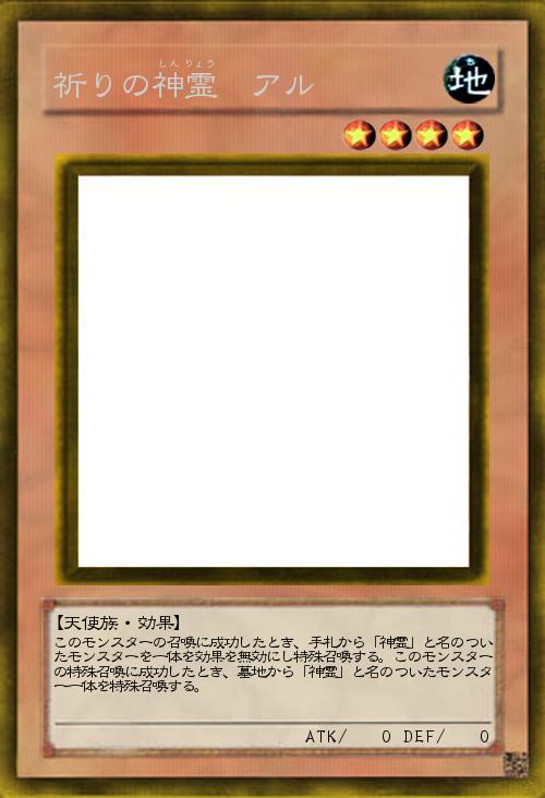 | このモンスターの召喚に成功したとき、手札から「神霊」と名のついたモンスターを一体を効果を無効にし特殊召喚する。このモンスターの特殊召喚に成功したとき、墓地から「神霊」と名のついたモンスター一体を特殊召喚する。 | |||