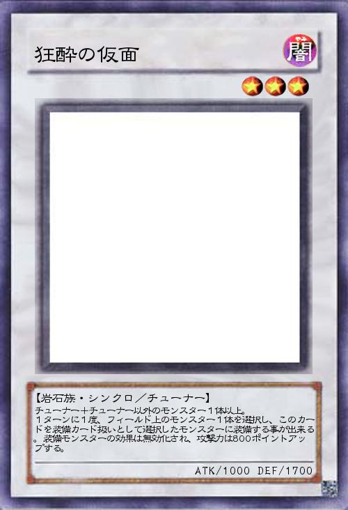 チューナー+チューナー以外のモンスター1体以上。 1ターンに1度、フィールド上のモンスター1体を選択し、このカードを装備カード扱いとして選択したモンスターに装備する事が出来る。装備モンスターの効果は無効化され、攻撃力は800ポイントアップする。 |